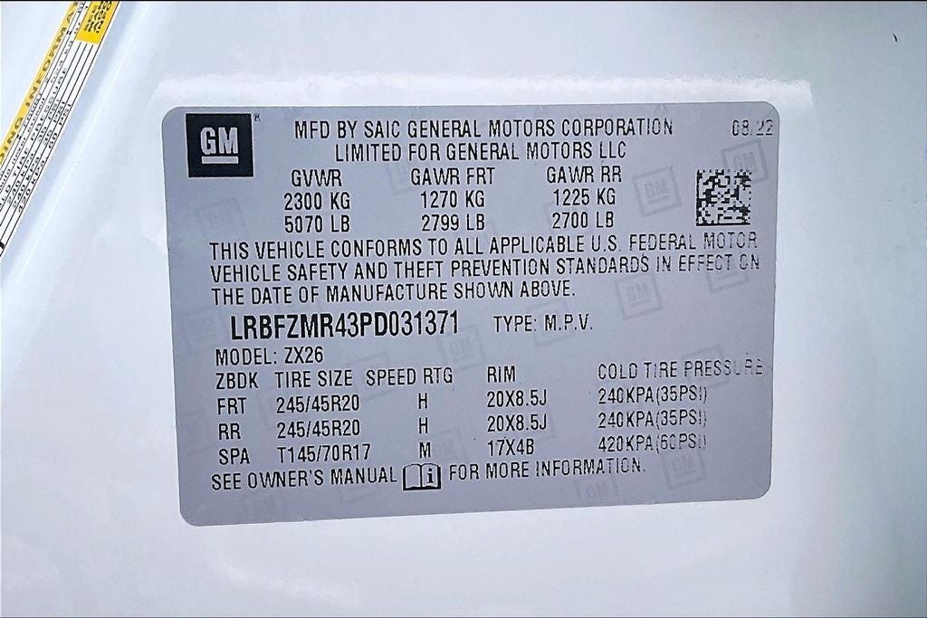 - GVWR, 5070 lbs (2300 kg) (AWD models.)