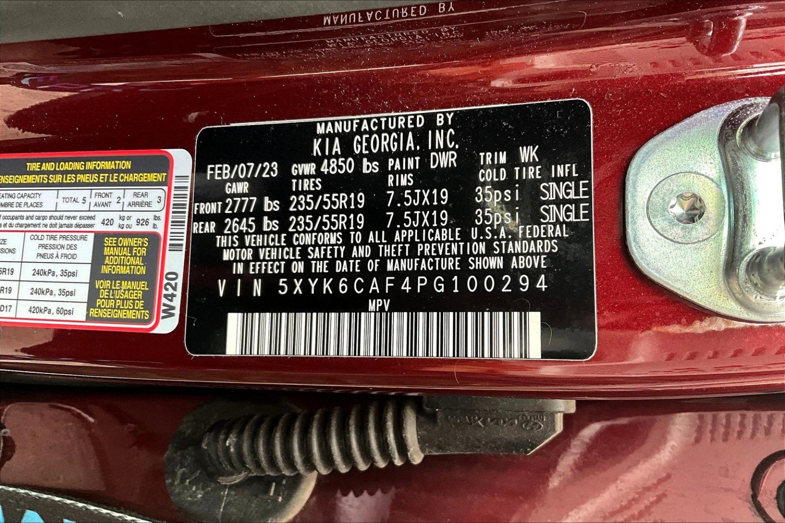 - Front Tire Size: P235/55HR19